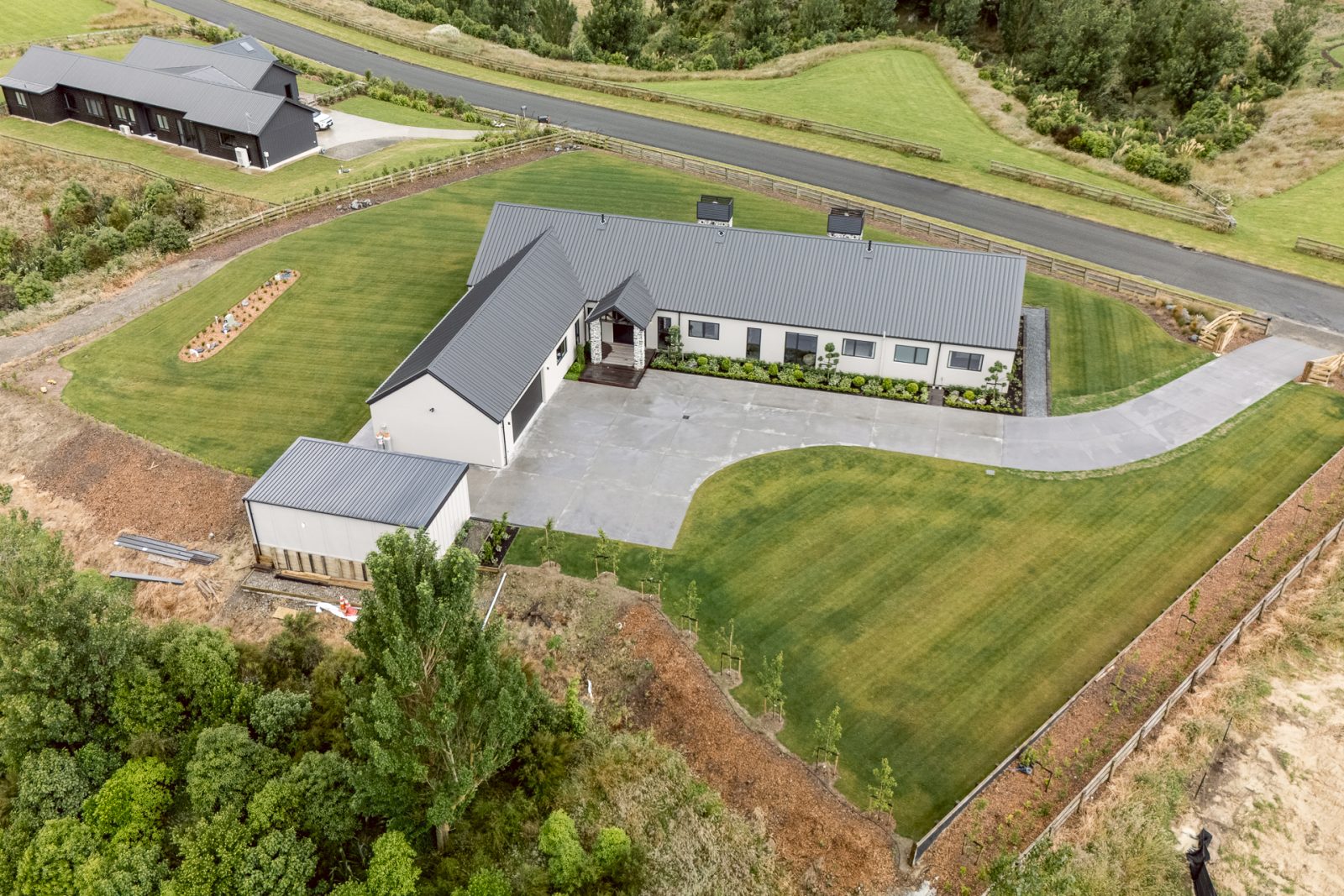 Inside, the layout is centred around a large main lounge that opens directly to a covered outdoor living area with an outdoor fireplace, a sheltered spot that works well year-round in the Manawatu climate.